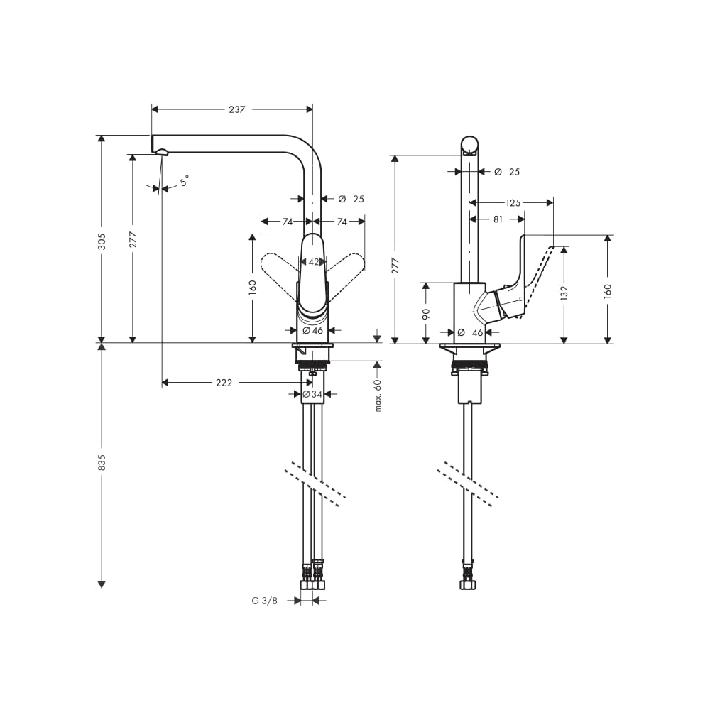 | Длина излива | 237 мм |