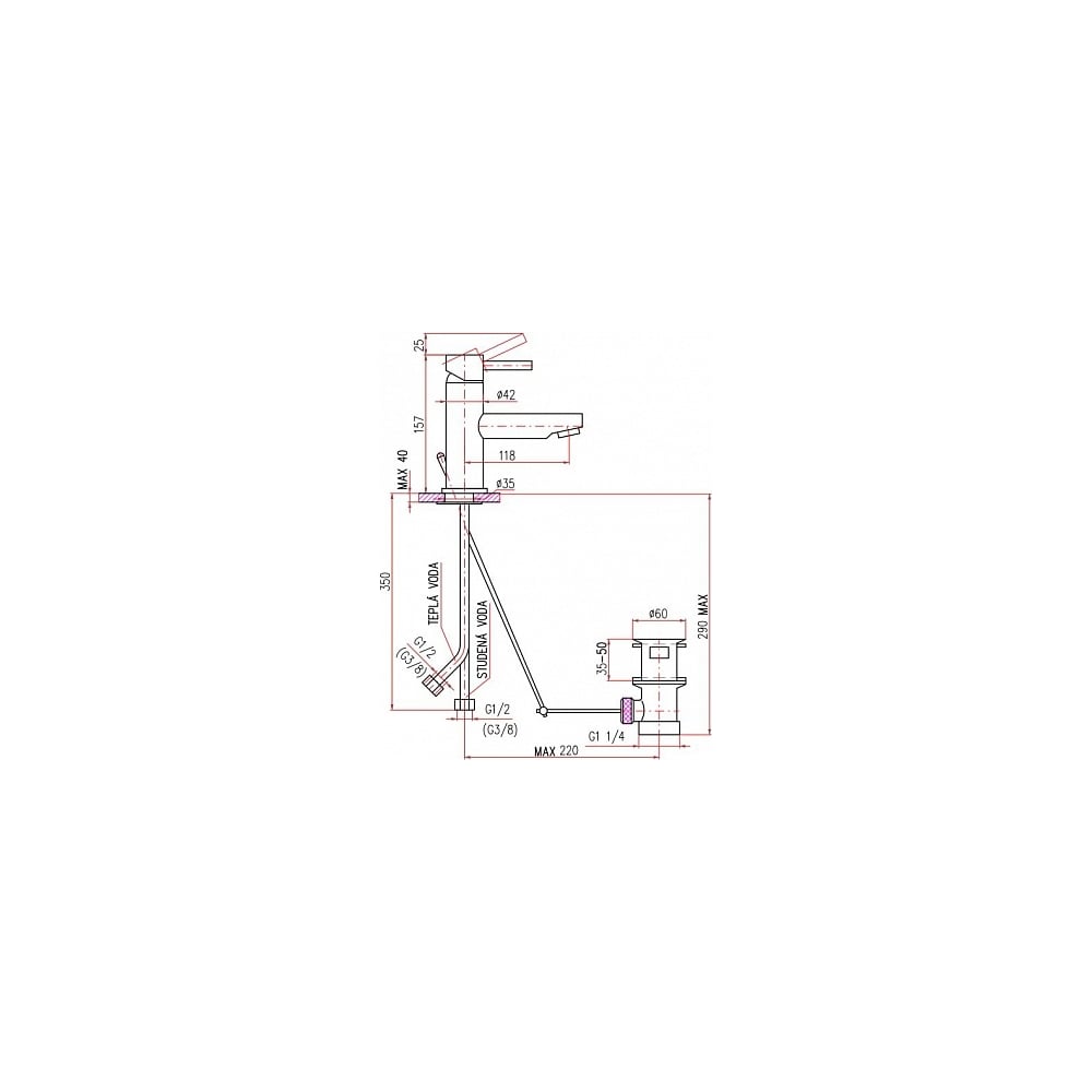 | Диаметр отверстия в раковине | 35 мм |