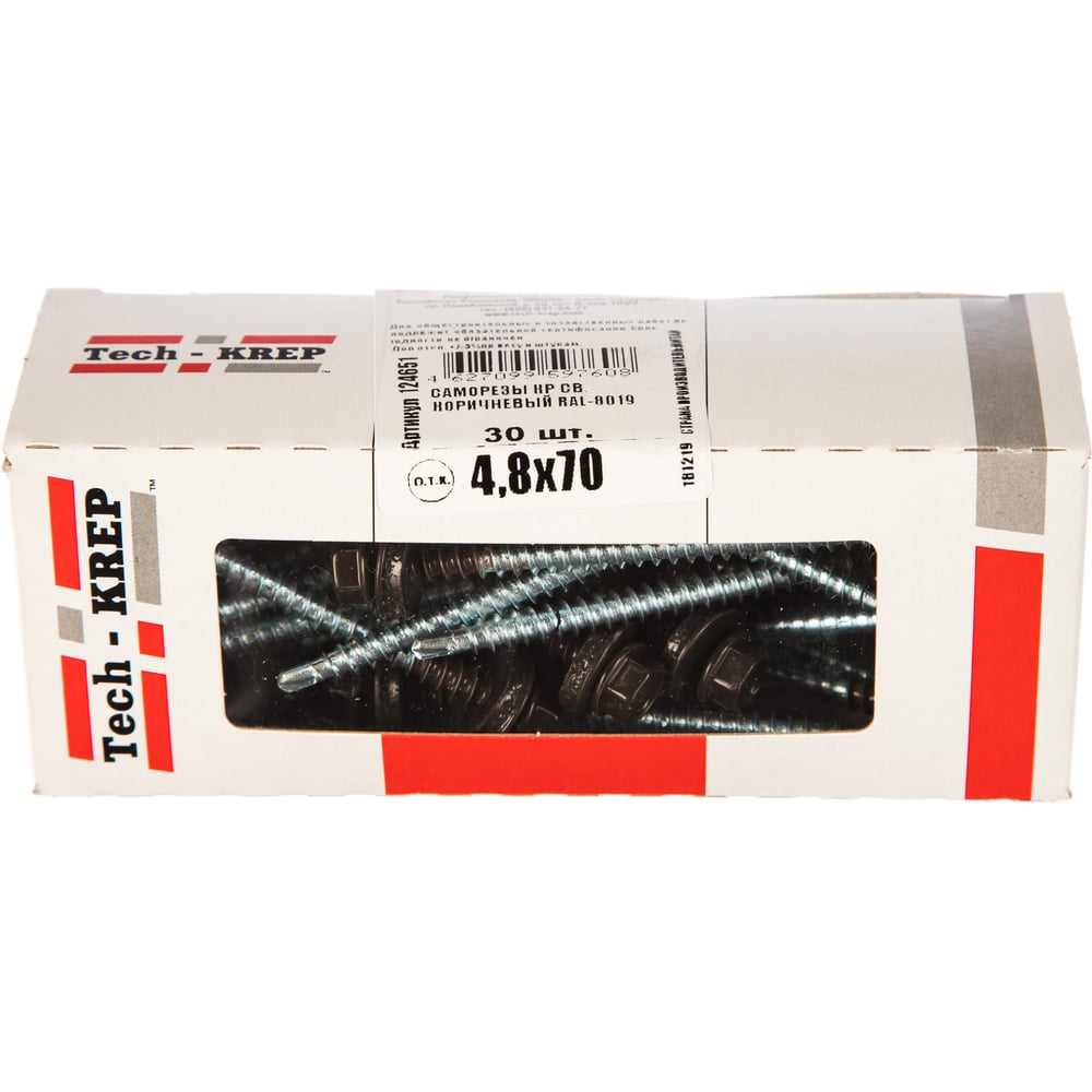 Кровельный саморез Tech-Krep КР сверло 4,8х70 RAL-8019 коричневый 30 шт, коробка с окНОМ 124651