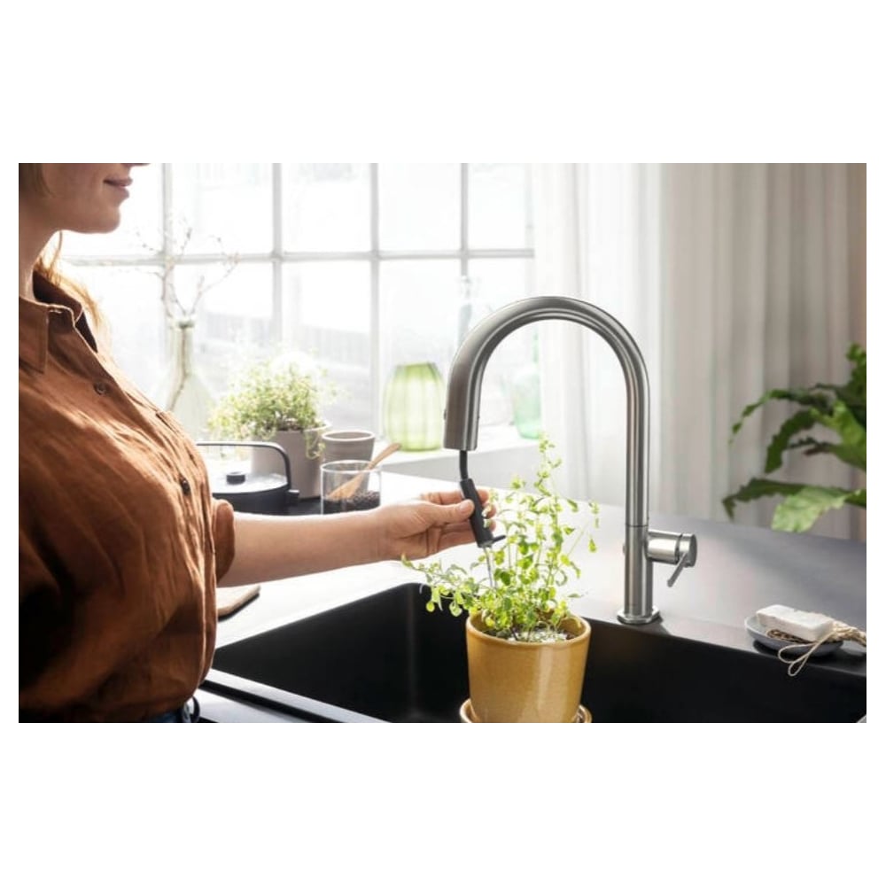Смеситель для кухни Hansgrohe Aqittura m91 210 1j с вытяжным изливом с подключением к фильтру питьевой воды, сталь 76803800 00000126672