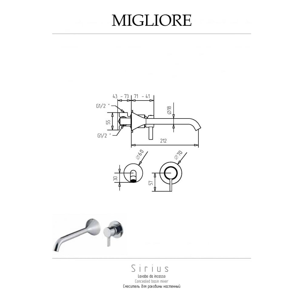 Смеситель для раковины Migliore SIRIUS скрытого монтажа, настенный, на 2 отверстия излив L21 см, хром 28181