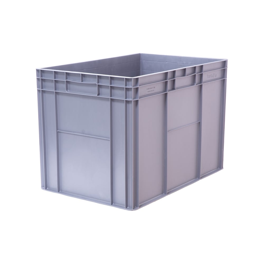 Полимерный ящик Тара.ру 600x400x420 мм, стенки сплошные, дно усиленное, 4 закрытые ручки, цвет серый 32404
