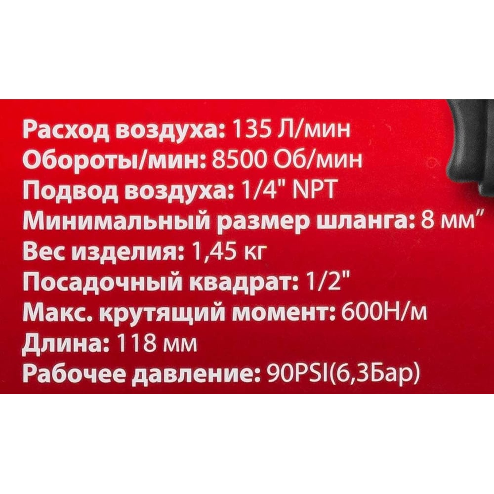 | Диаметр воздушного штуцера | 1/2 дюйм |