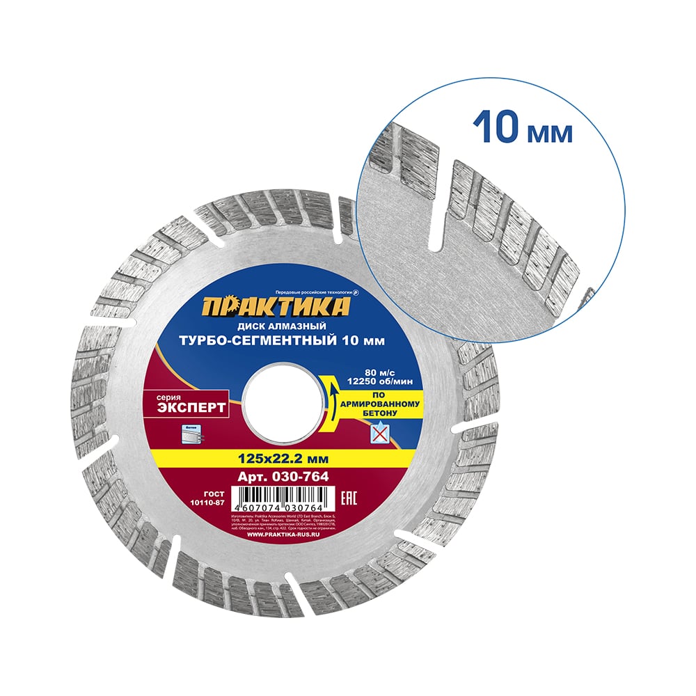 Диск алмазный Эксперт по армированному бетону (125х22.2 мм) ПРАКТИКА 030-764