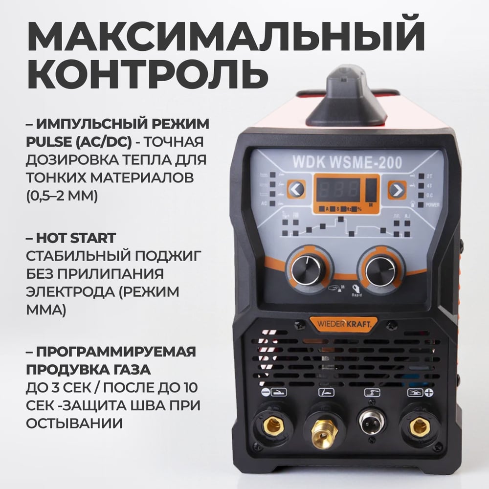 Сварочный инвертор аргонодуговой сварки WIEDERKRAFT AC DC PULSED TIG WDK WSME-200