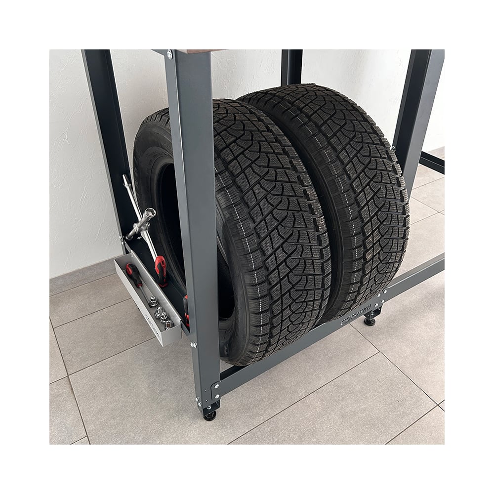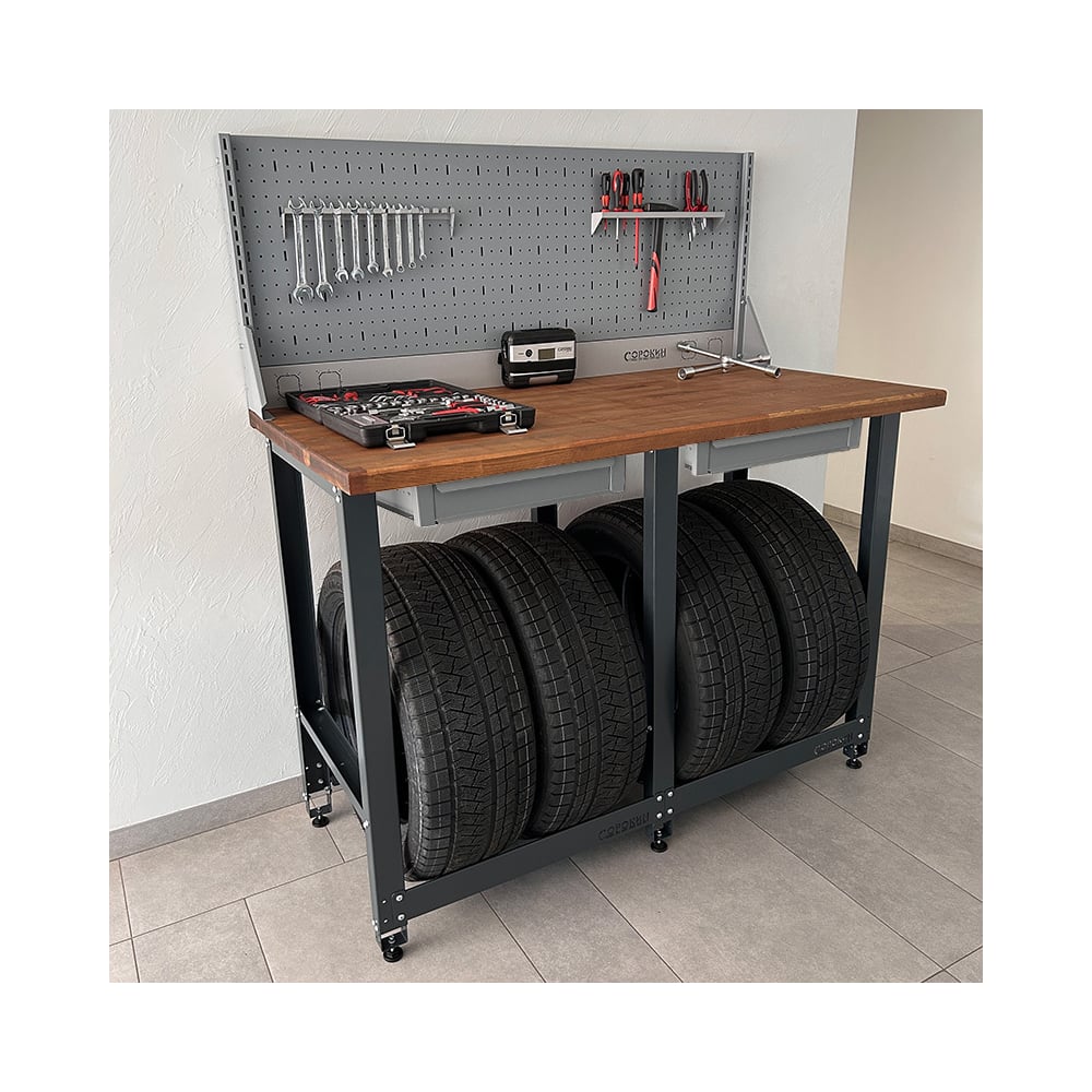 Верстак Сорокин Standart с деревянной столешницей и траверсами для хранения колёс 35.42