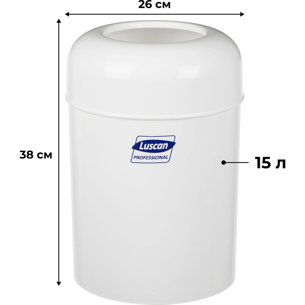Ведро для мусора Luscan 15 л, пластик, белое, 26x38 см 1012162