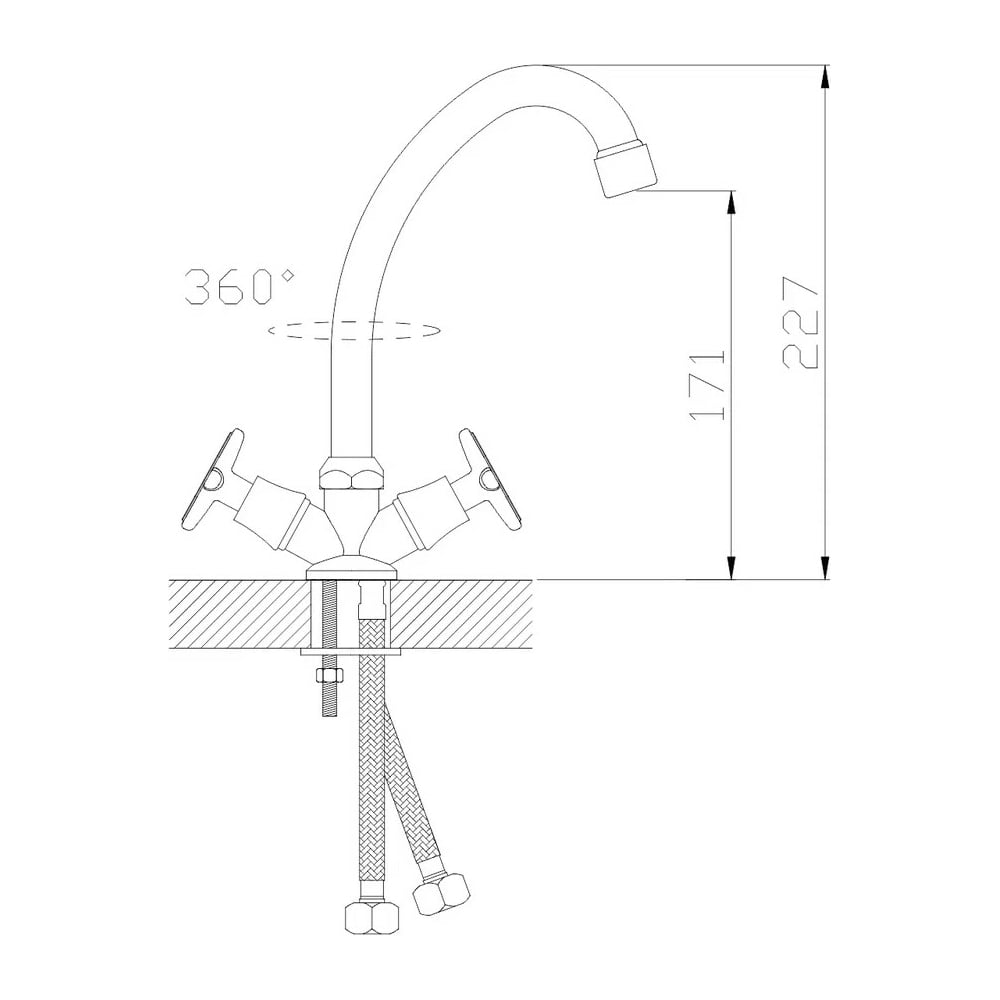 Смеситель для кухни Антей Кристи с 2-мя рукоятками, с высоким изливом 2/20 407350-ANT