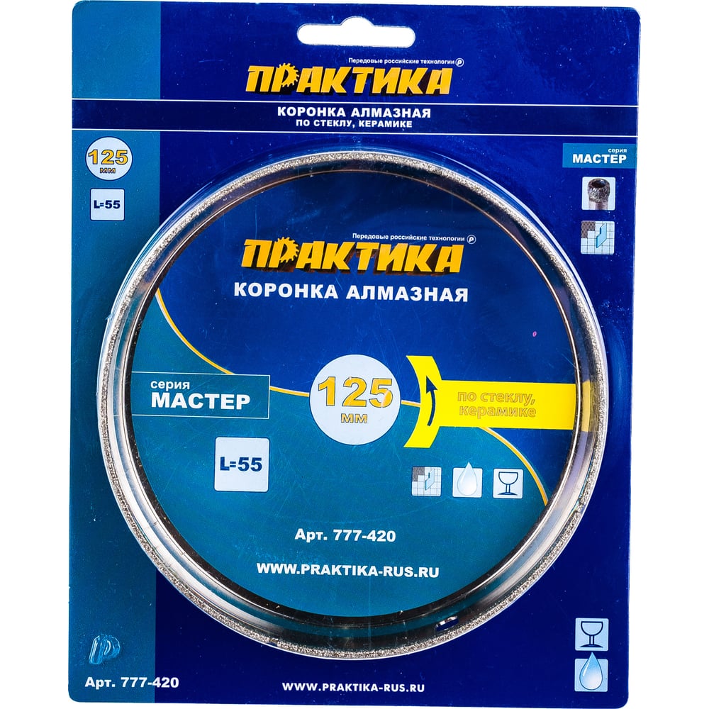 Коронка алмазная по стеклу и керамике (125 мм) ПРАКТИКА 777-420