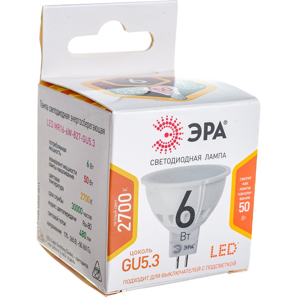 Светодиодная лампа ЭРА LED smd MR16-6w-827-GU5 3 Б0020542