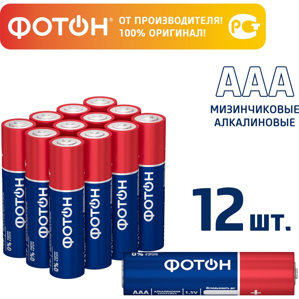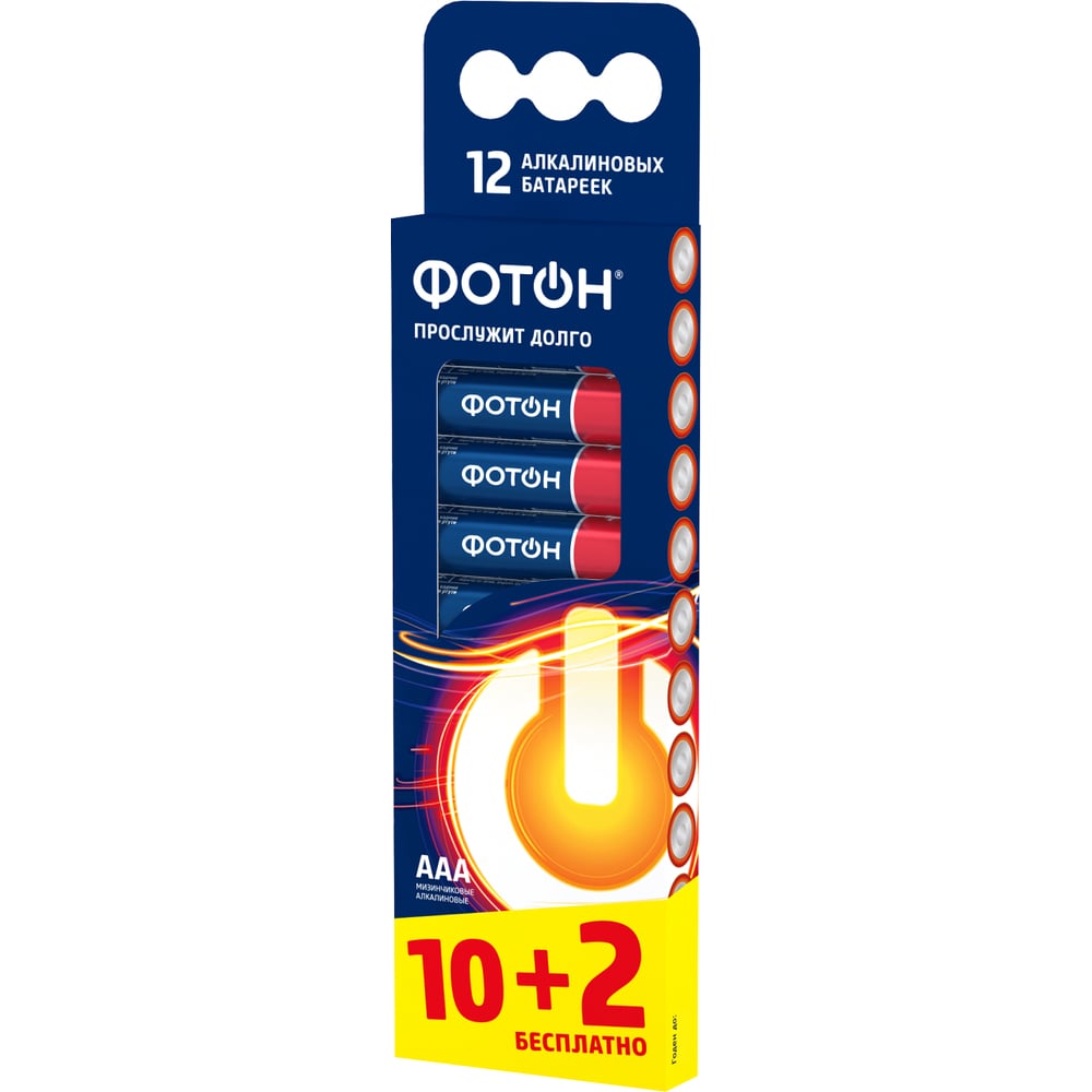 Батарейки мизинчиковые алкалиновые ААА ФОТОН LR03, набор 12шт. 21222