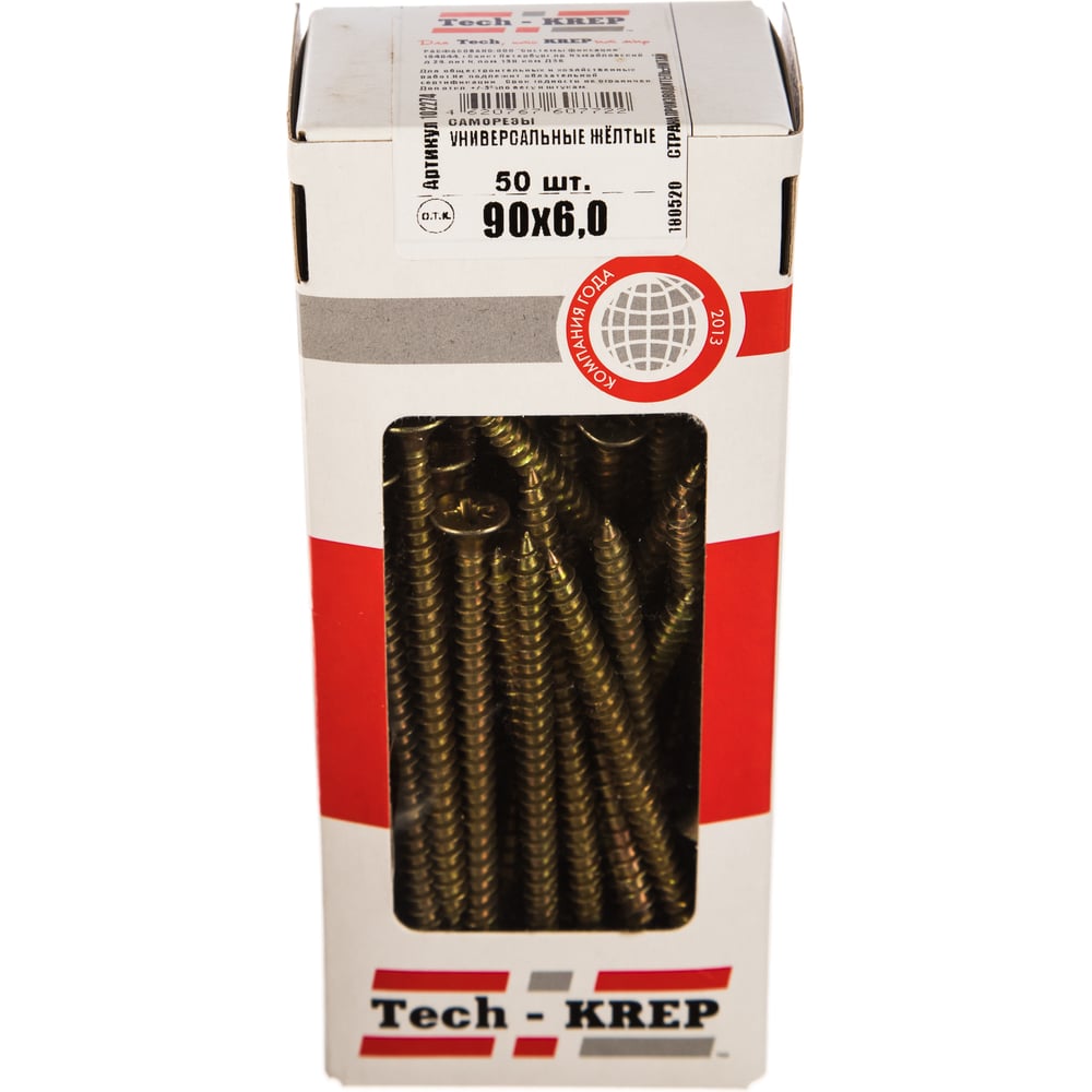 Универсальный саморез Tech-Krep 90х6,0 мм 50 шт желтый, коробка с окном 102274