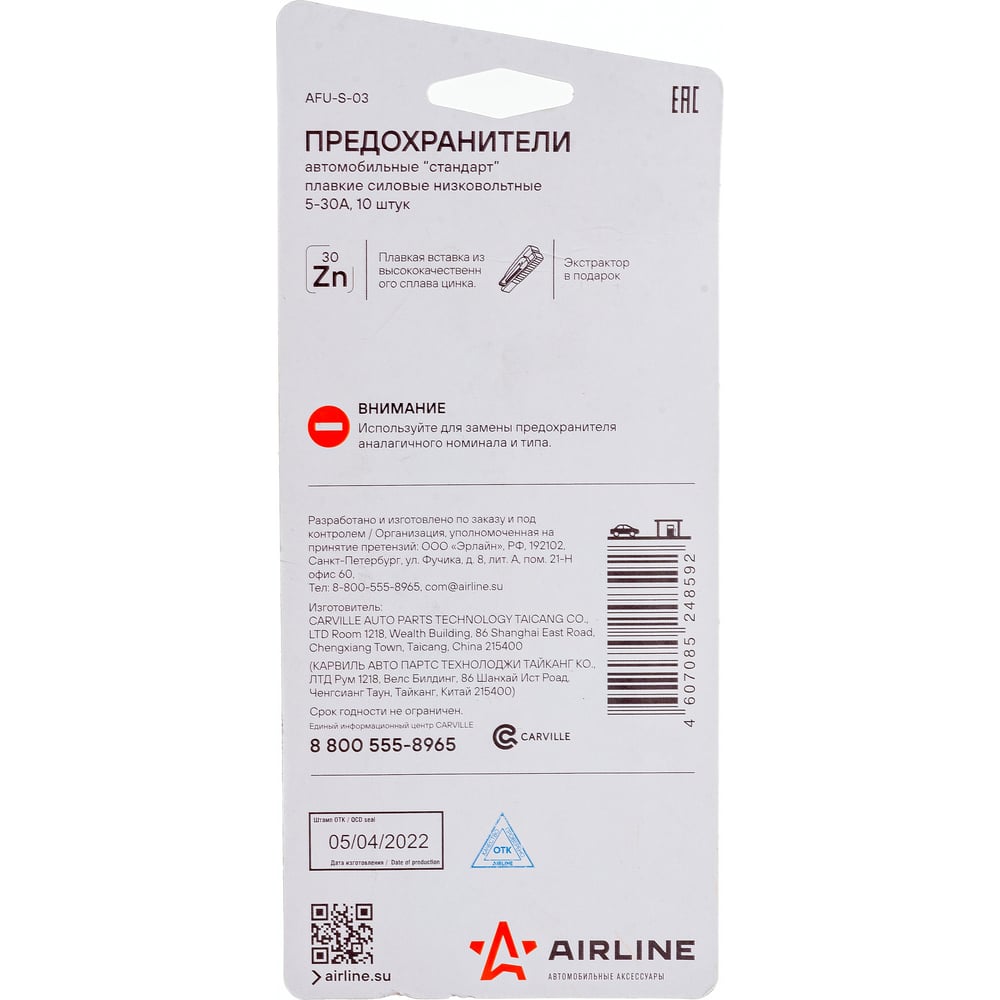 Airline предохранители "стандарт" в блистере 10 шт. 5-30а afu-s-03