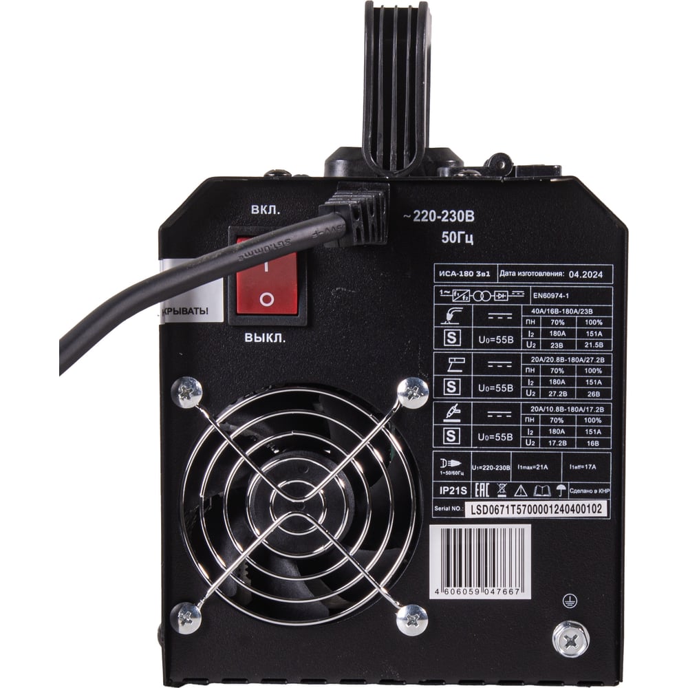 | Max сварочный ток ММА | 180 А |