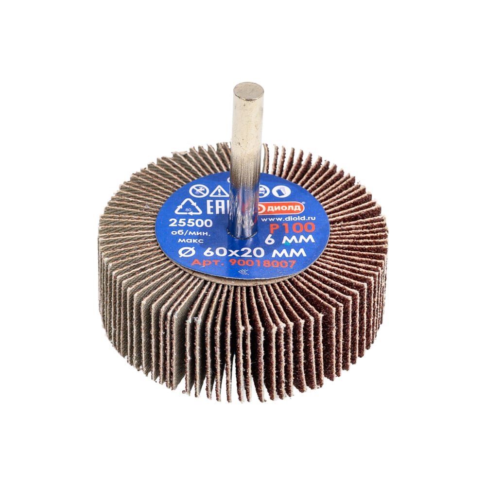 Круг лепестковый абразивный радиальный 60x20 мм, хвостовик 6 мм, P100 ДИОЛД 90018007