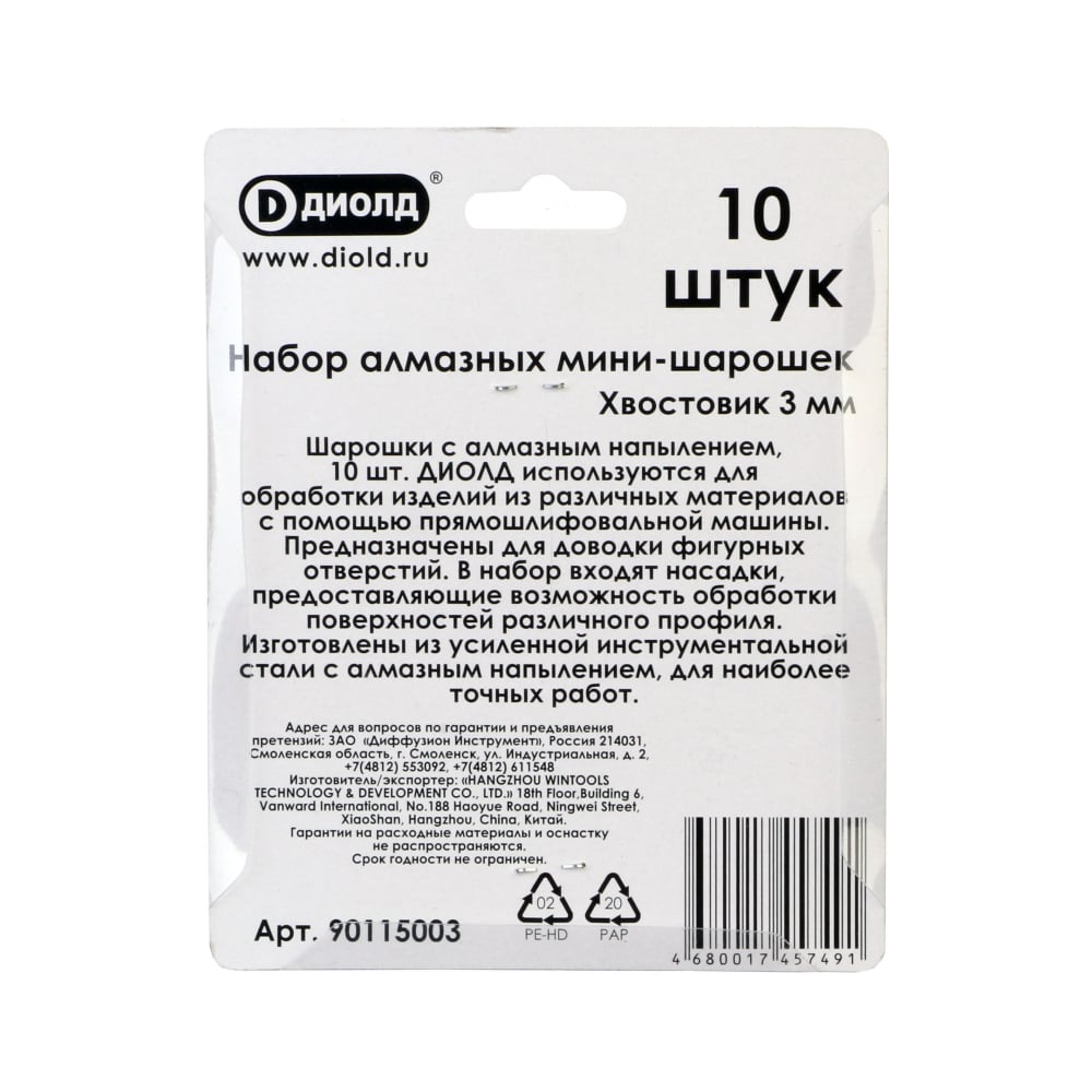 Набор мини-шарошек алмазных 10 шт, хвостовик 3 мм ДИОЛД 90115003