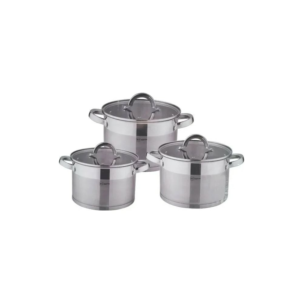 | Состав набора | Набор кастрюль 1,9 л 2,6 л 3,6 л с крышками. |