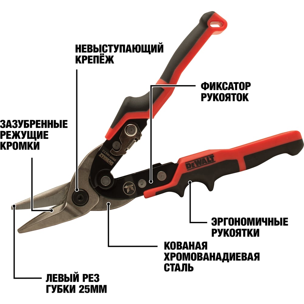 Ножницы по металлу DEWALT ERGO левые, 250 мм DWHT14673-0