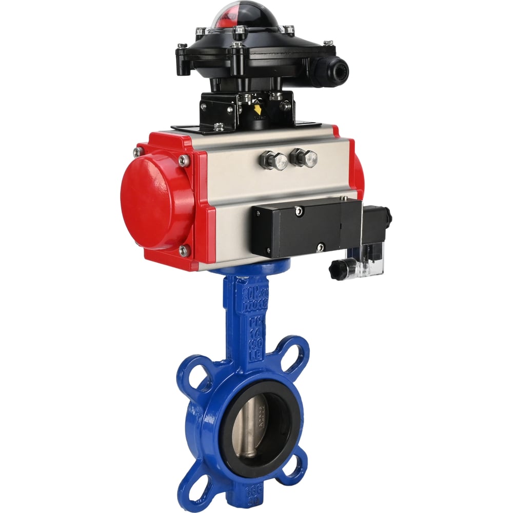 Затвор DN.ru WCB-316L-EPDM Ду250 Ру16 с пневмоприводом, пневмораспределителем, БКВ D050-00264