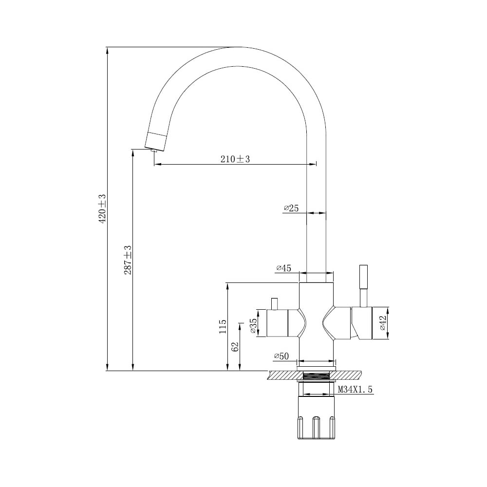 | Высота смесителя | 420 мм |