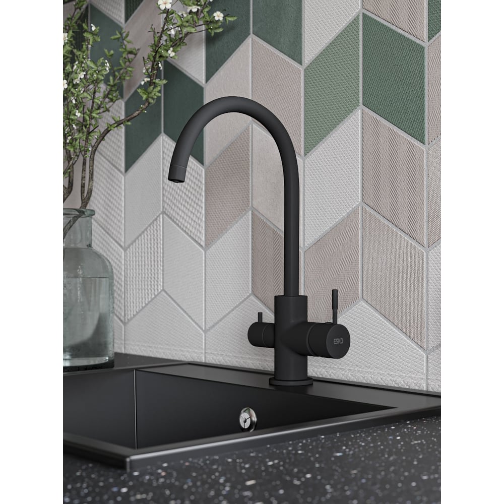 Смеситель для кухни ESKO, Кухня/Kitchen, с подключением к фильтру, черный, K22B