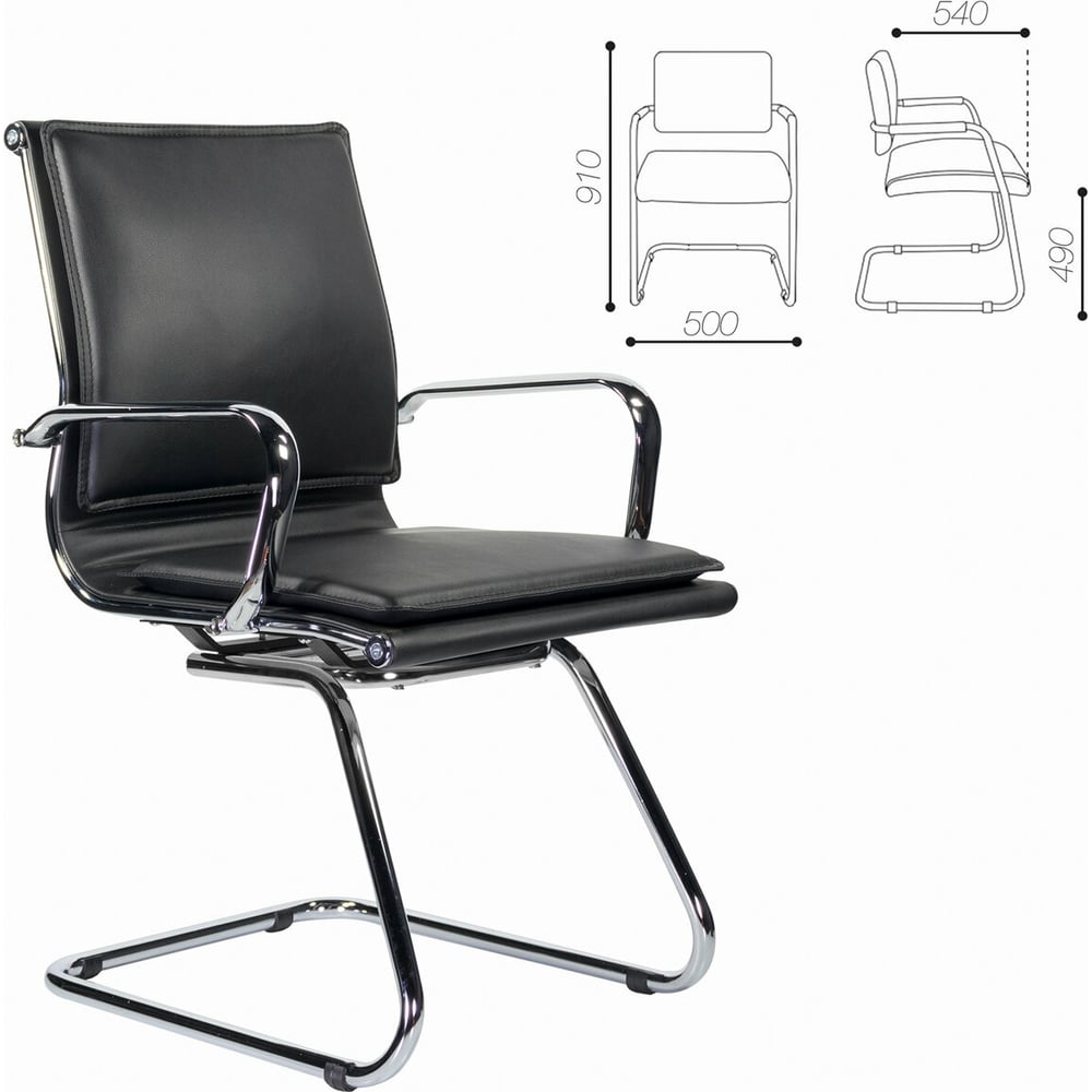 Кресло для приемных и переговорных BRABIX "Kayman CF-102", экокожа, хром, черное 532572