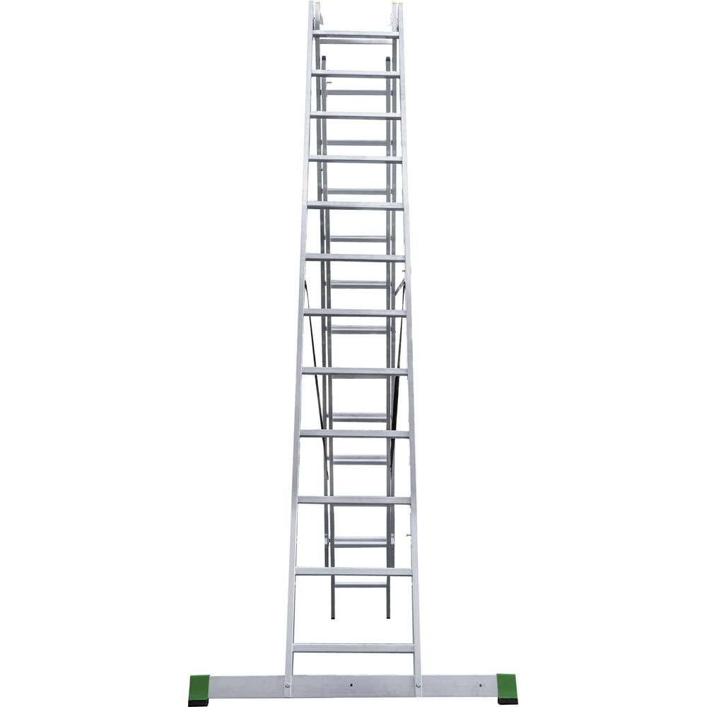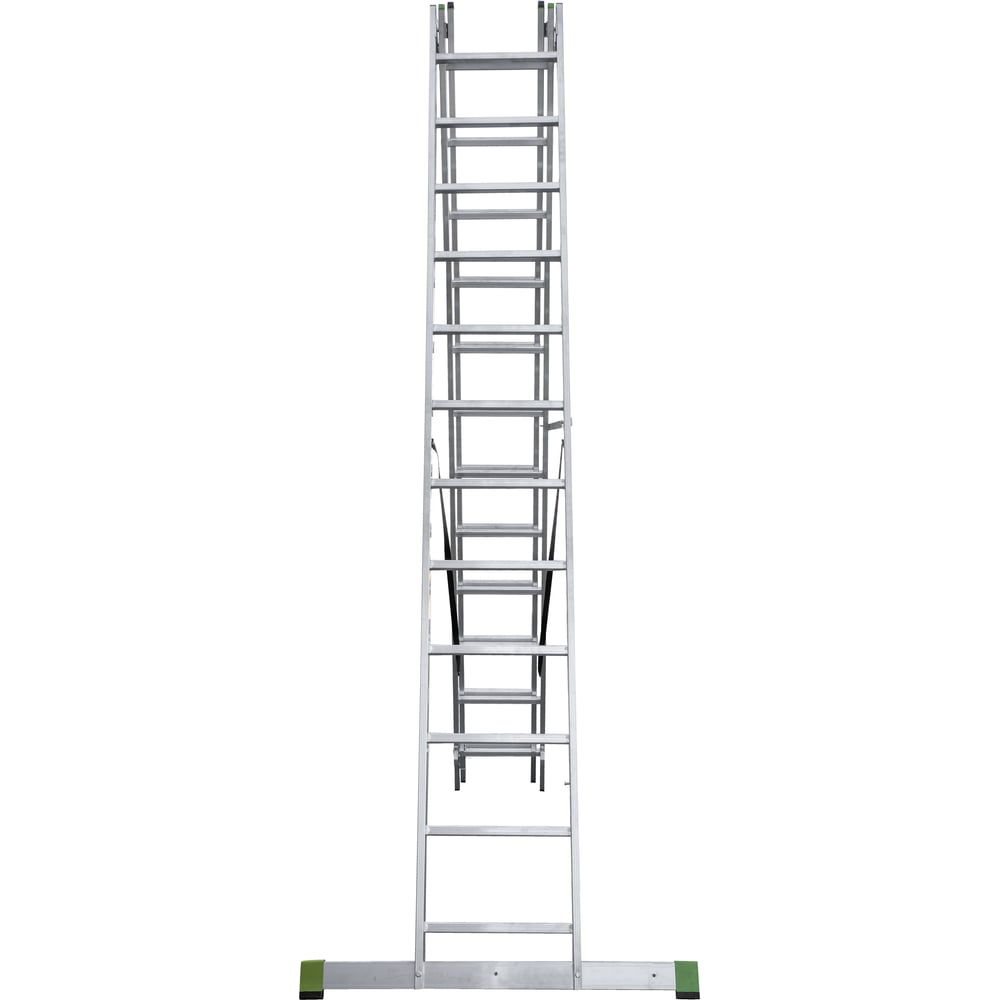 Габариты без упаковки 3160х480х190 мм Материал алюминий Тип трехсекционная Класс товара полупрофессиональный Вес нетто 16.9 кг Размер в сложенном состоянии 316х48х19 см Рабочая высота 8.56 м Max рабочая нагрузка 150 кг Общая длина 7.86 м Ширина лестницы 476 мм min длина в сложенном состоянии 3.16 м Количество ступеней 3х12 шт Телескопическая нет Регулировка опоры угловой траверсы нет Max длина 7.86 м Min длина 3.16 м