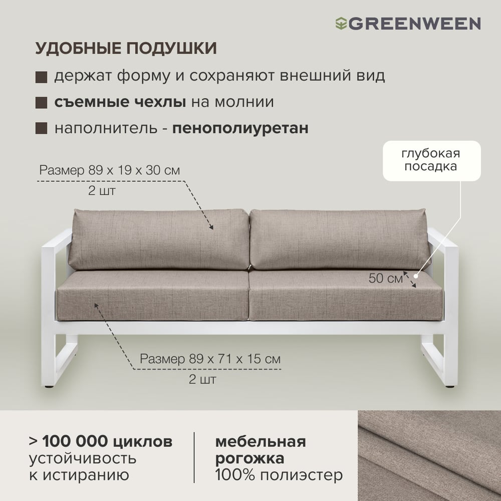Уличный диван GreenWeen CAPRI белый алюминий, светло-серый велюр GW-AL-CAPRI-SOFA-1900W
