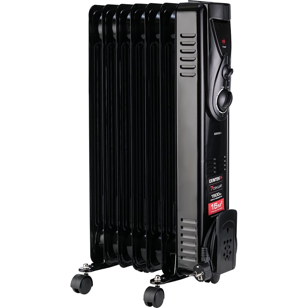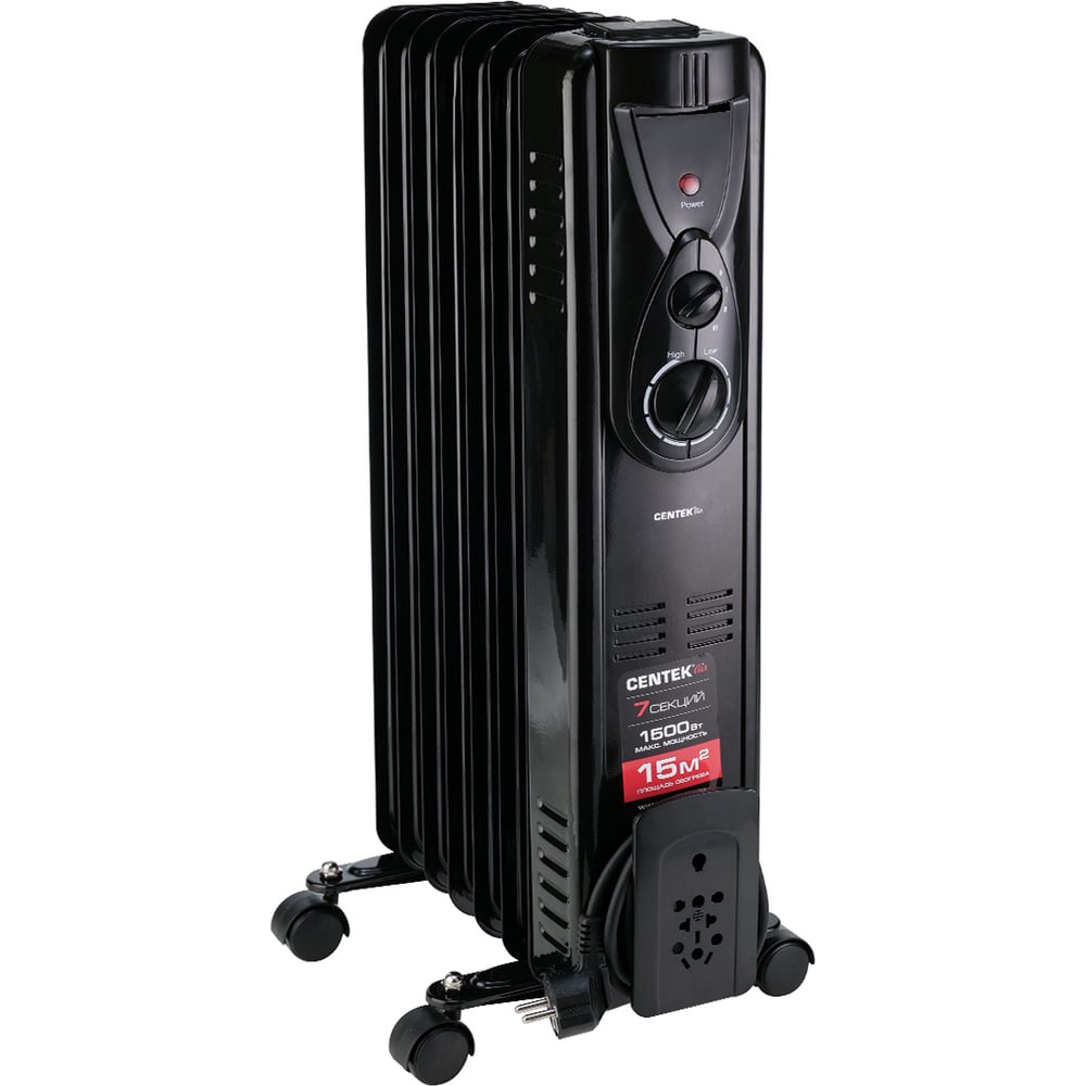 Масляный обогреватель Centek (Черный) 7 секций (15м) 1500Вт, 3 режима,защ.от перегрева CT-6200 Black