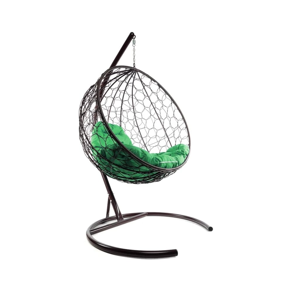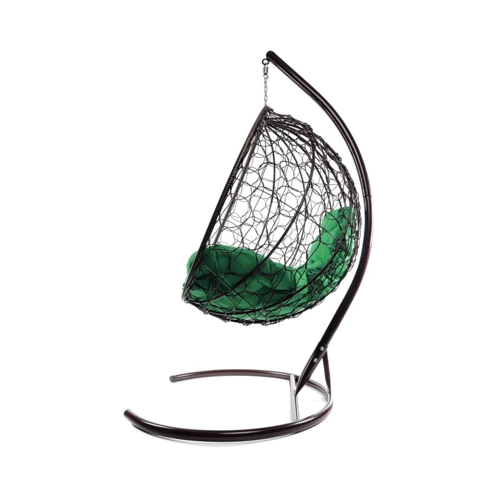 Подвесное кресло M-GROUP КРУГ с ротангом коричневое, зелёная подушка 11050204