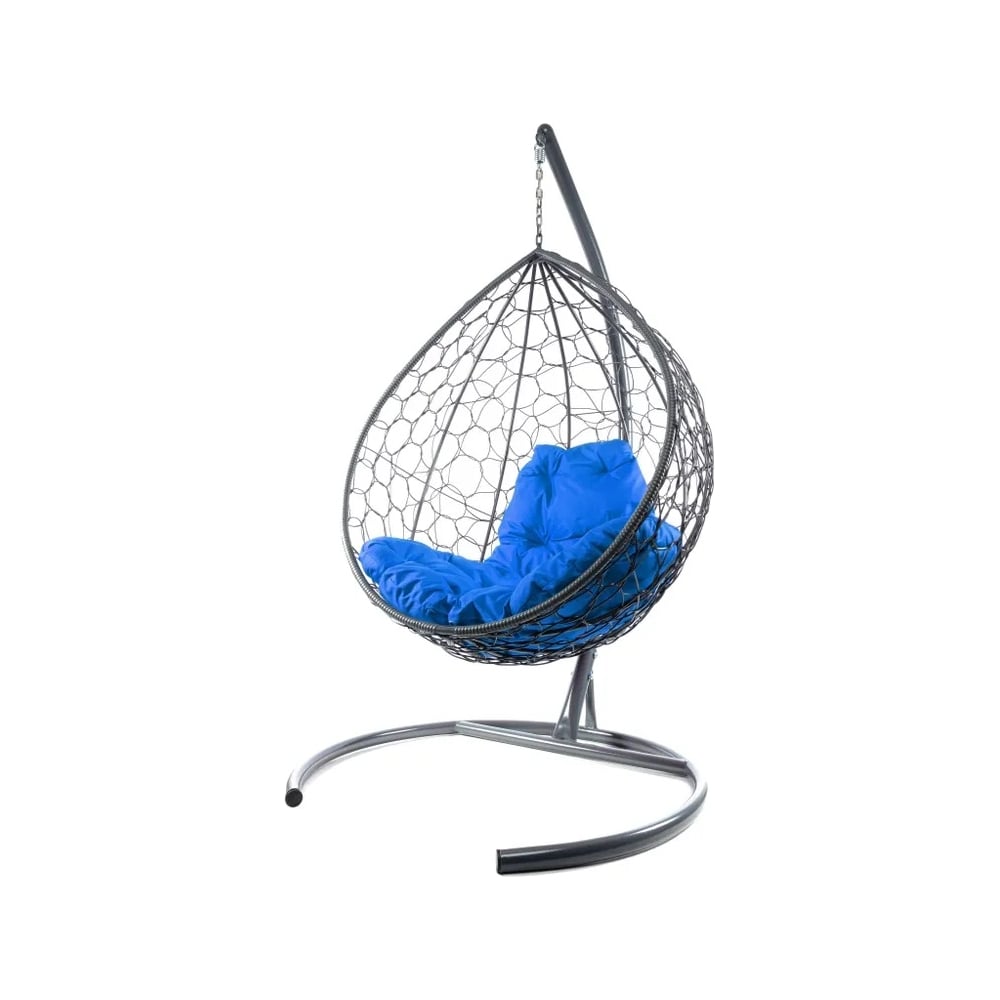 Подвесное кресло M-GROUP КАПЛЯ с ротангом серое, синяя подушка 11020310
