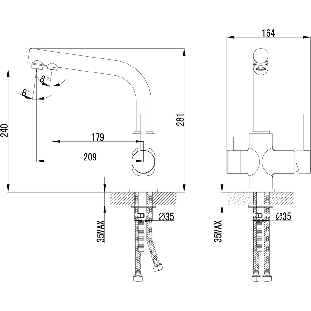 Цвет бежевый Тип установки настольный/на раковину Стиль современный Материал корпуса латунь Серия Comfort Поворотный излив да Назначение для кухни Тип крепления на шпильку Гибкий излив нет Длина излива 209 мм Высота смесителя 281 мм Лейка нет Термостат нет Встраиваемый нет Подводка в комплекте гибкая Аэратор да Переключатель на фильтр да Тип смесителя однорычажный Форма излива воды традиционная Запорный клапан керамический картридж Форма смесителя округлая Выдвижной излив нет Излив есть Складной нет С щеткой нет Двойной излив есть Диаметр картриджа 35 мм Размер крепления G1/2 Направление струи вертикальное Диаметр отверстия в раковине 35 мм ГОСТ/DIN нет Высота излива 240 мм Мах толщина столешницы 35 мм Расположение рычага сбоку Расположение термостата без термостата