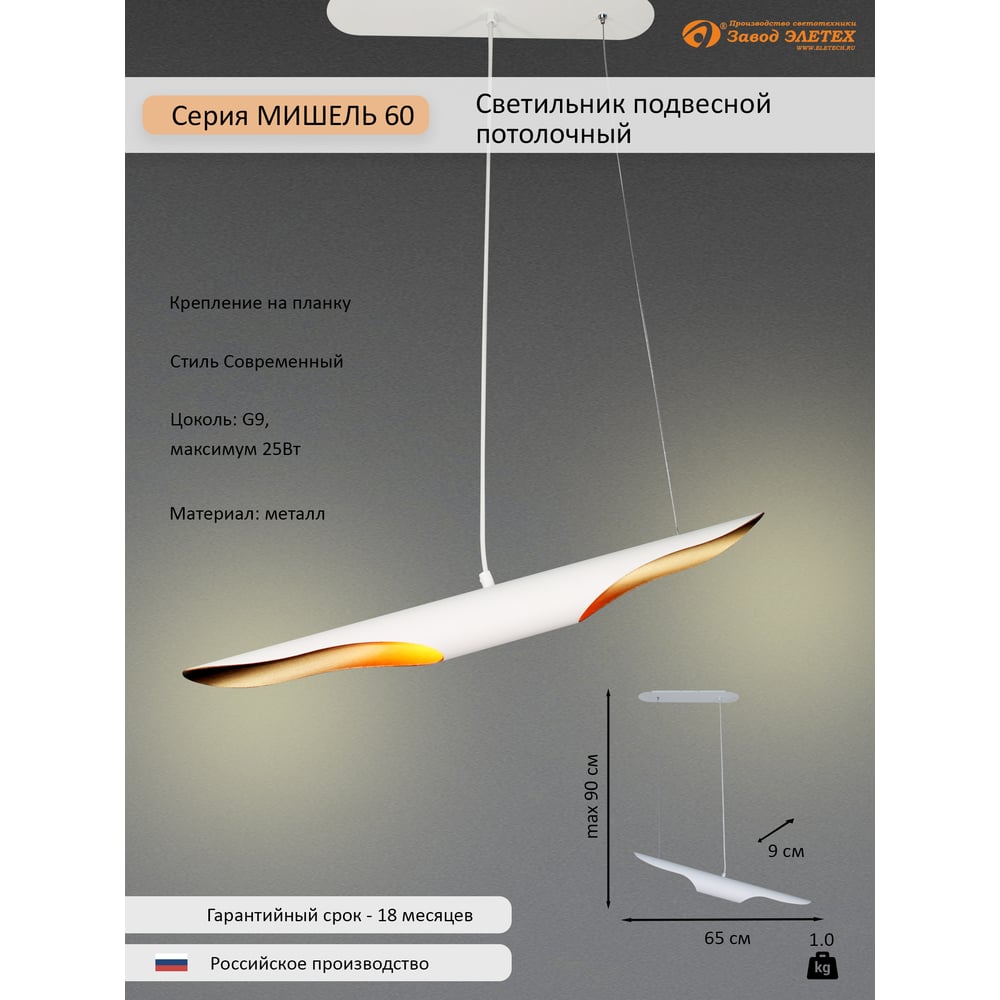 Светильник подвесной ЭЛЕТЕХ Мишель 60, золотисто-белый 2x25 1005405372