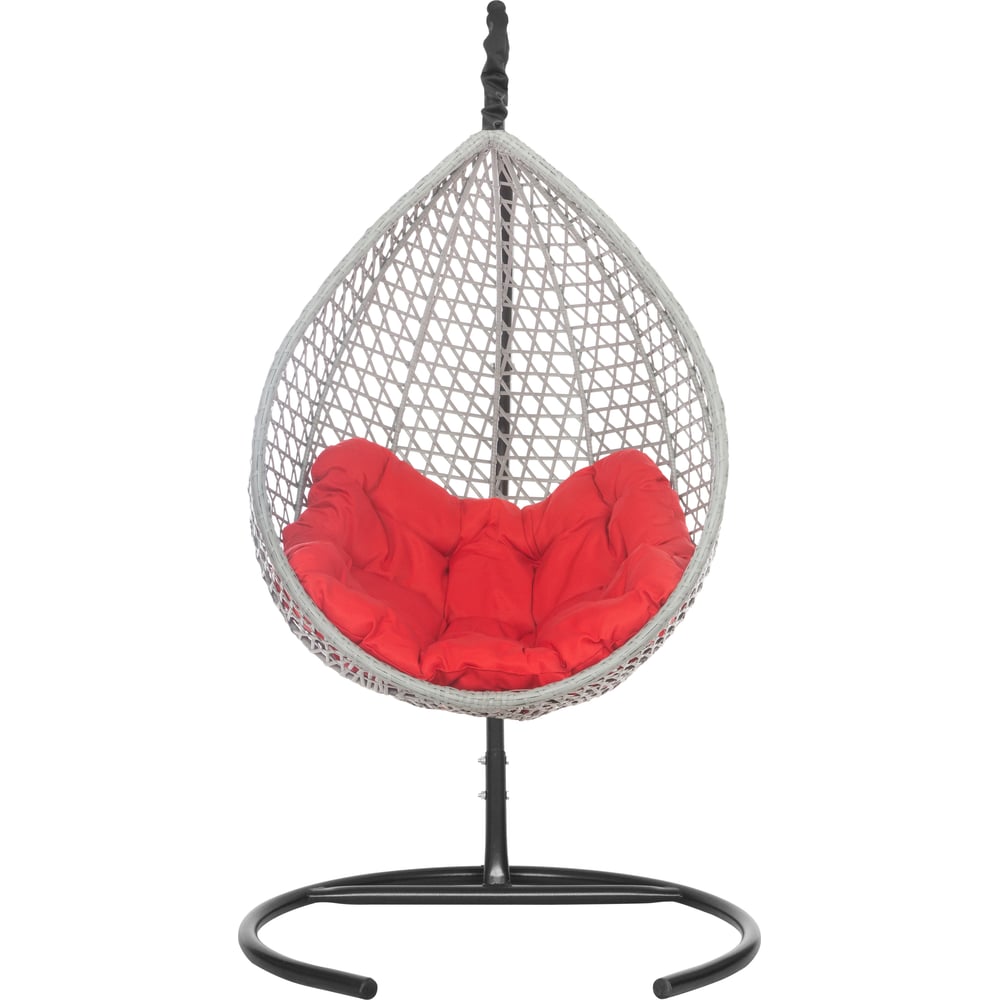 Подвесное кресло-кокон Лаура Montblanc серый + каркас, подушка красная MONB 506