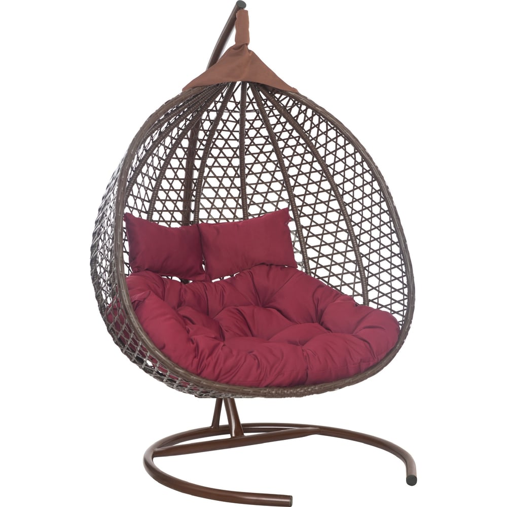 Подвесное двухместное кресло-кокон Лаура ФИДЖИ коричневый +каркас, подушка бордовая FID 304