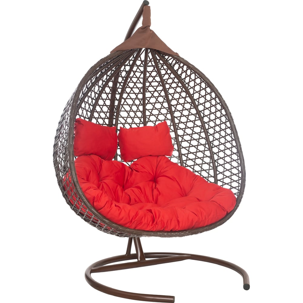 Подвесное двухместное кресло-кокон Лаура ФИДЖИ коричневый +каркас, подушка красная FID 306