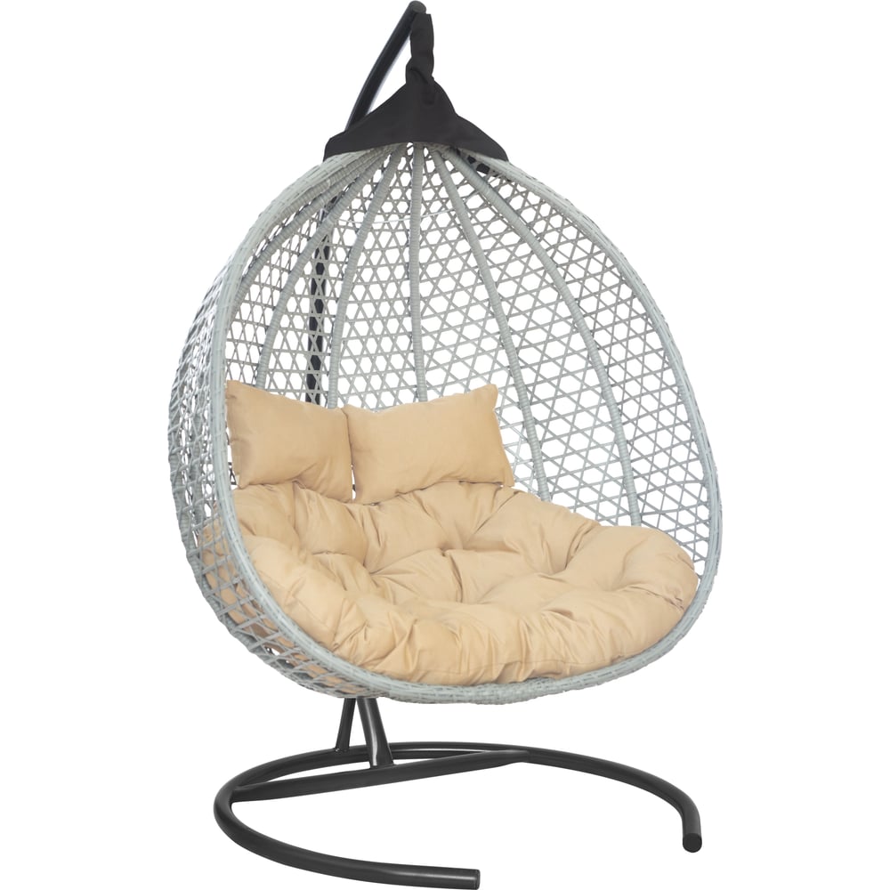 Подвесное двухместное кресло-кокон Лаура ФИДЖИ серый + каркас, подушка бежевая FID 502