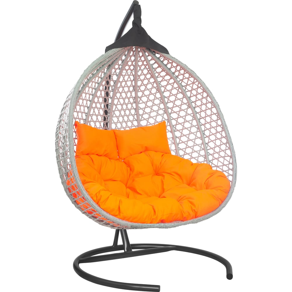 Подвесное двухместное кресло-кокон Лаура ФИДЖИ серый + каркас, подушка оранжевая FID 512