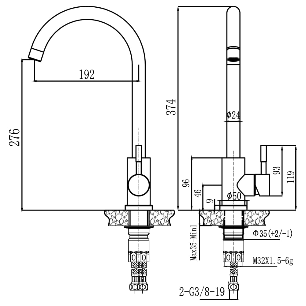 Смеситель для кухни Gota Rocio с высоким изливом Marismas 14410 молочно-белый нержавеющая сталь 1/10 14410-GOTA