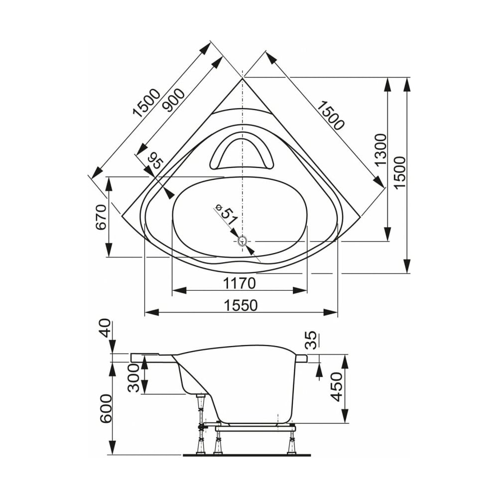 | Глубина ванны | 450 мм |