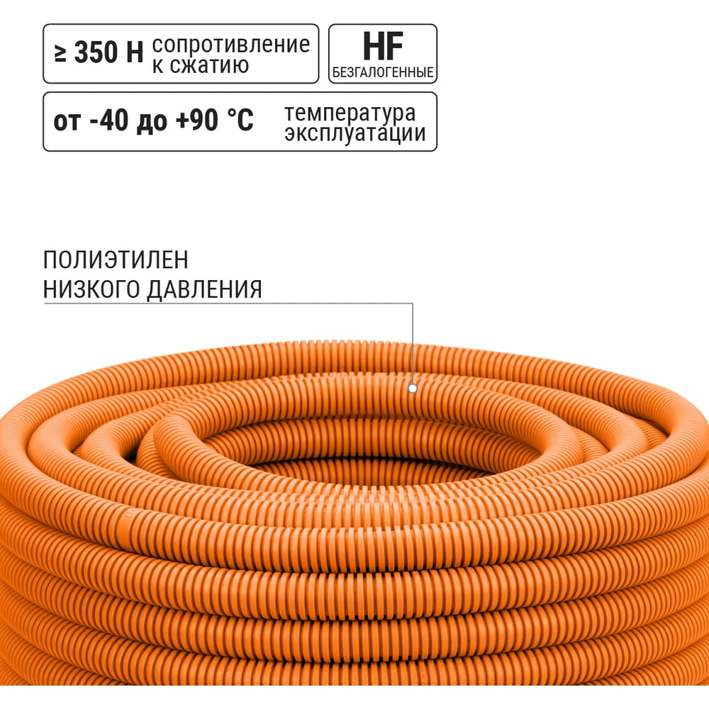 Гофра для кабеля TDM ELECTRIC 50мм ПНД с зондом 20 метров легкая оранжевая SQ0413-0016