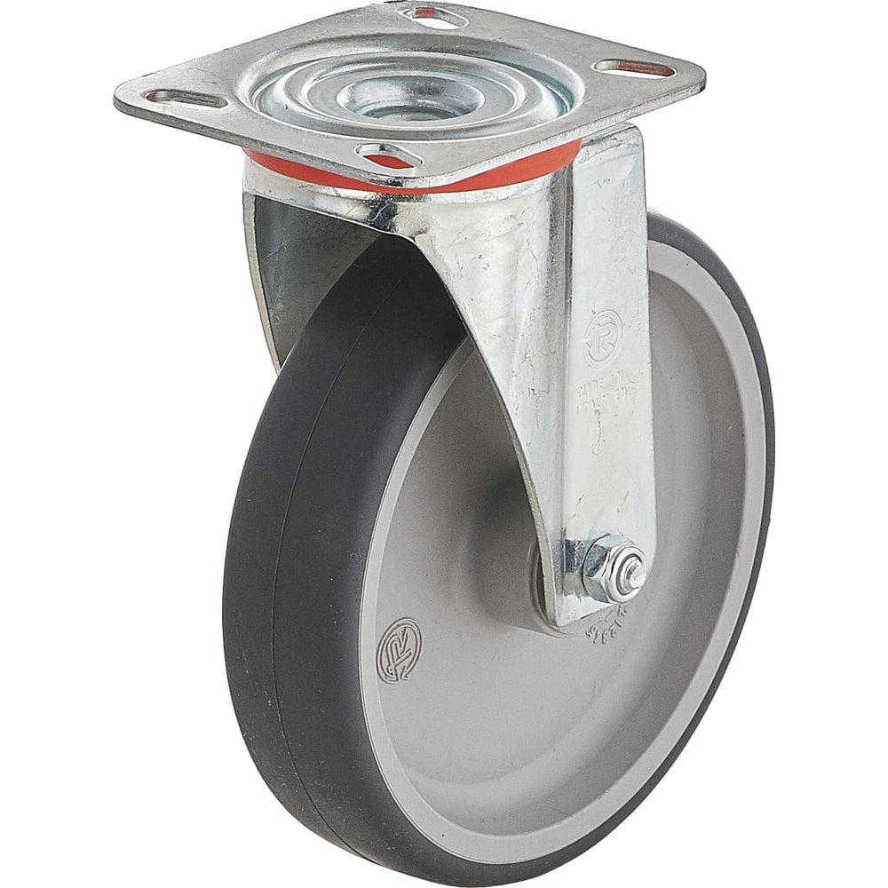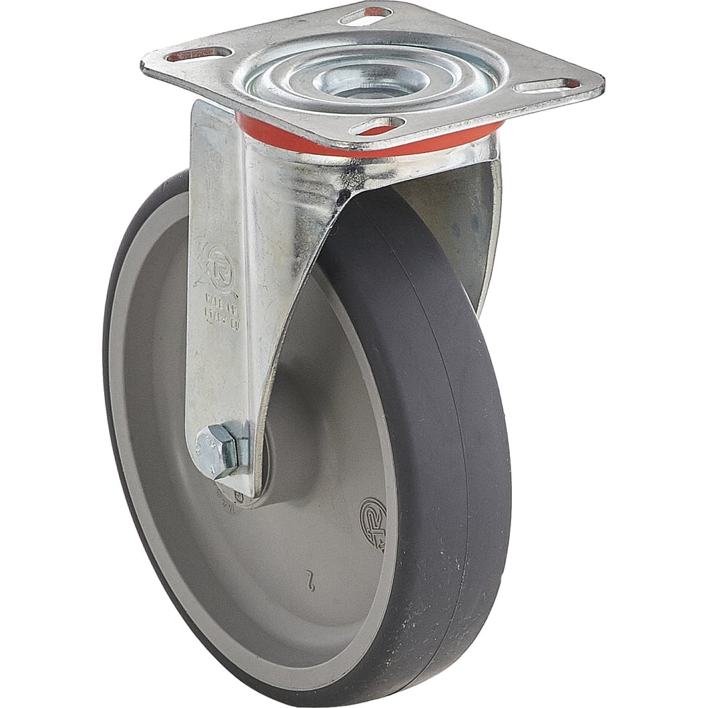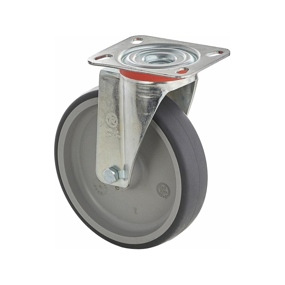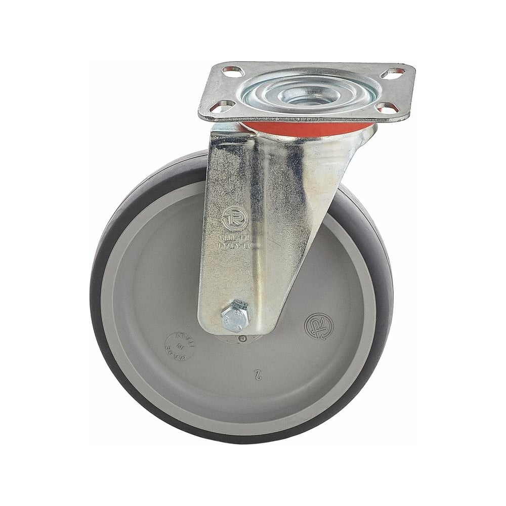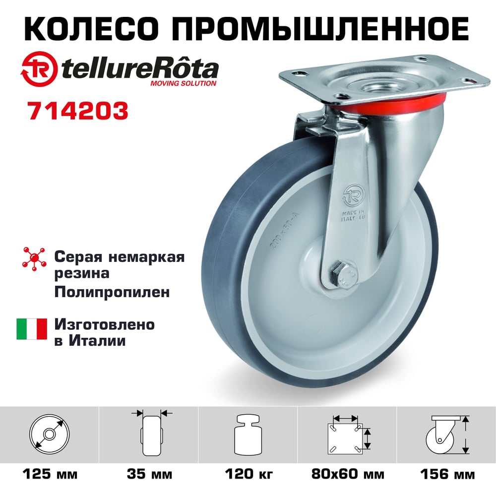 Колесо с вращающейся опорой и пластиной крепления (125 мм; 120 кг; термопластичная серая резина; полипропилен) Tellure Rota 714203