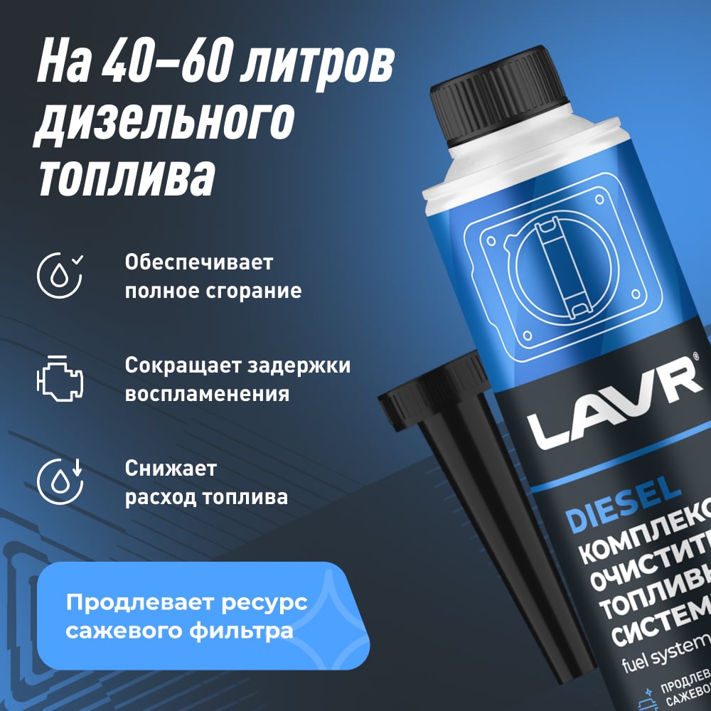 Lavr комплексный очиститель топливной системы присадка в дизельное топливо на 40-60л 310мл ln2124