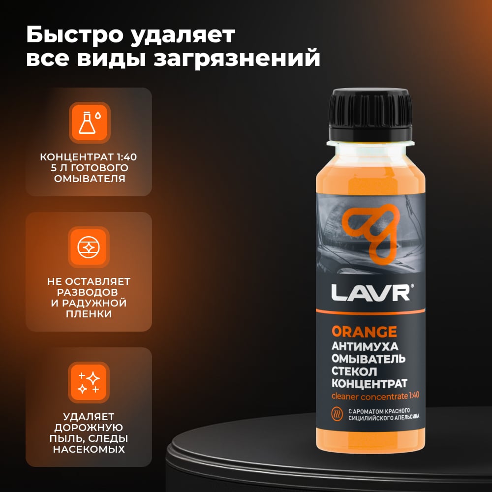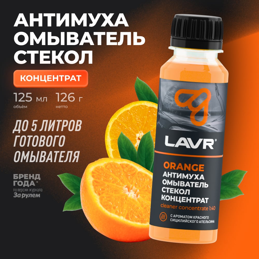 Омыватель стекол LAVR Антимуха Orange Концентрат 1:40, 125 мл Ln1215