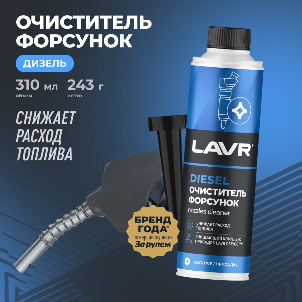 Очиститель форсунок Lavr присадка в дизельное топливо на 40-60 л, 310 мл Ln2110