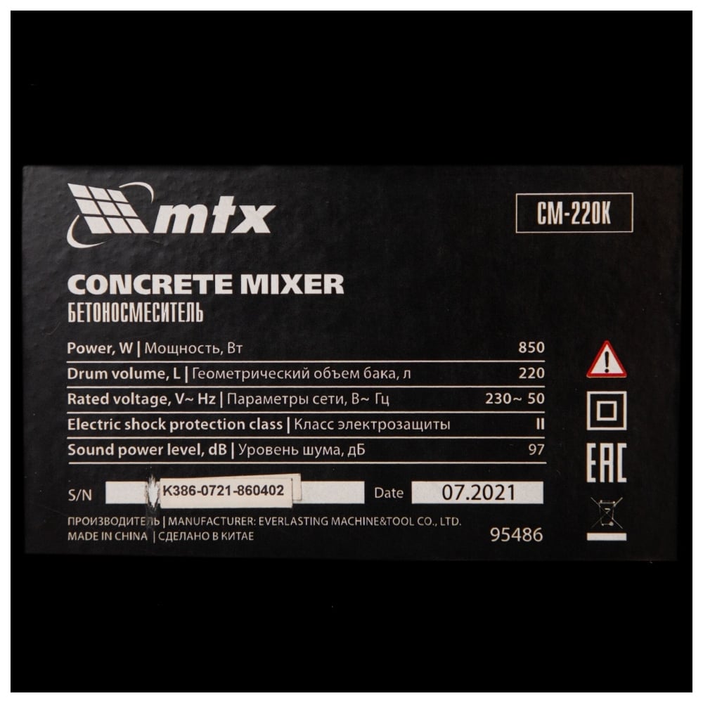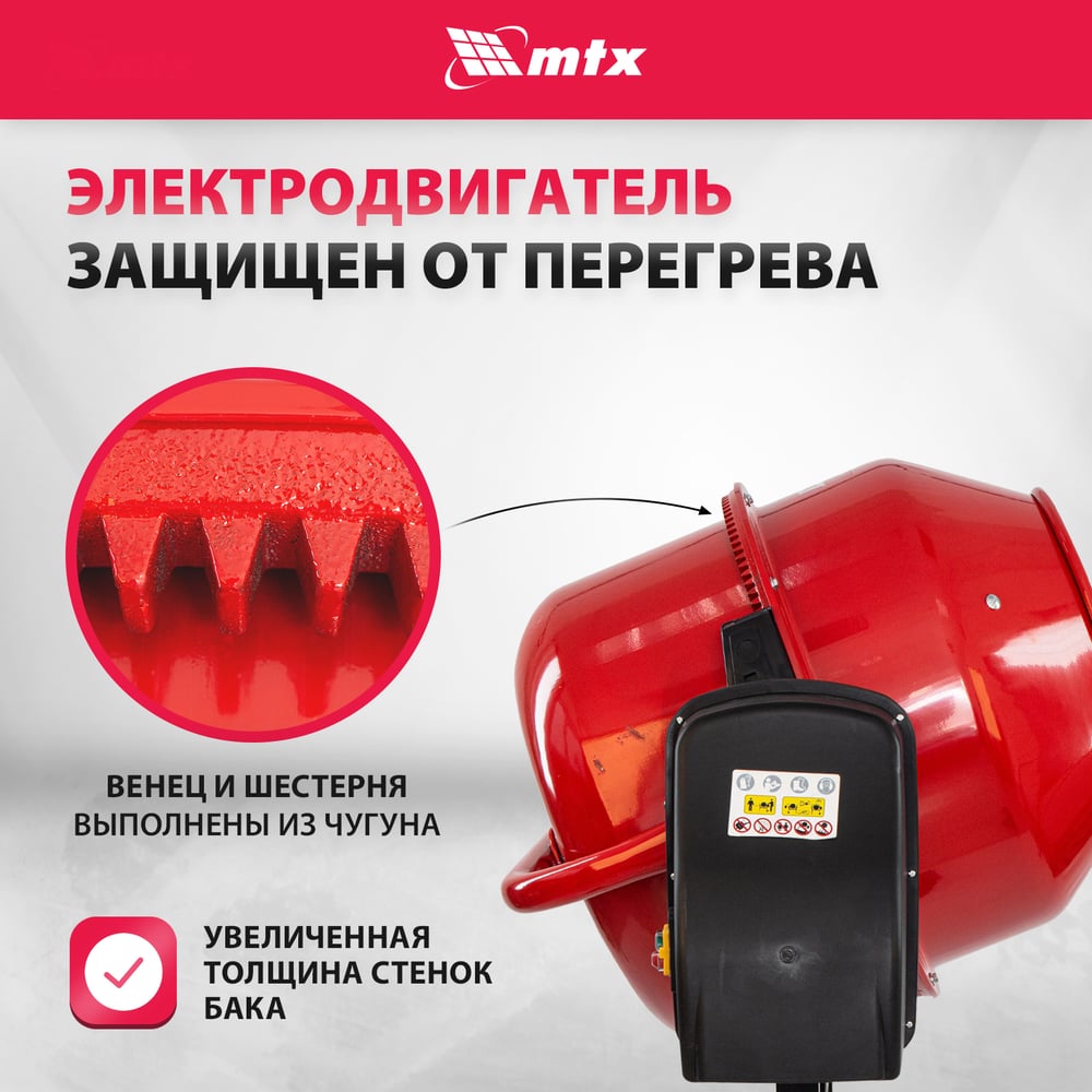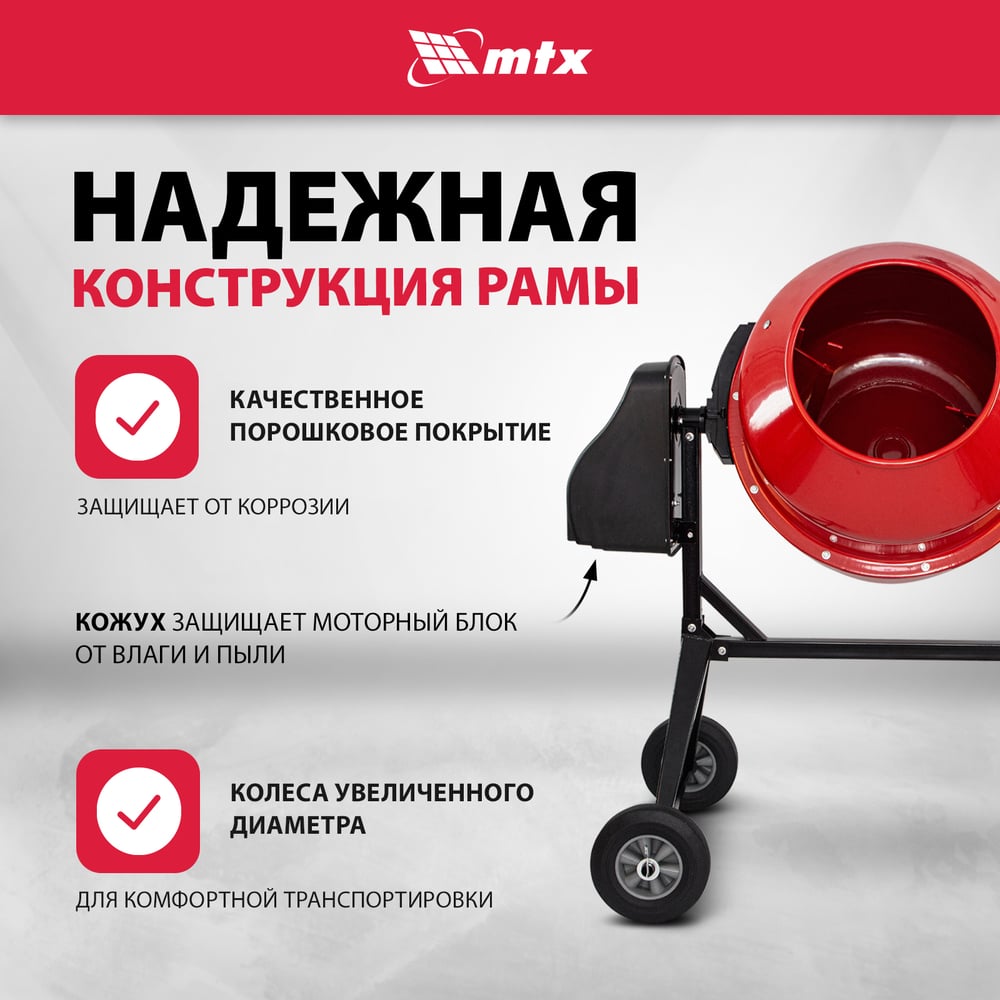 Бетоносмеситель MTX СМ-220К, 220 л, мощность 850 Вт 95486