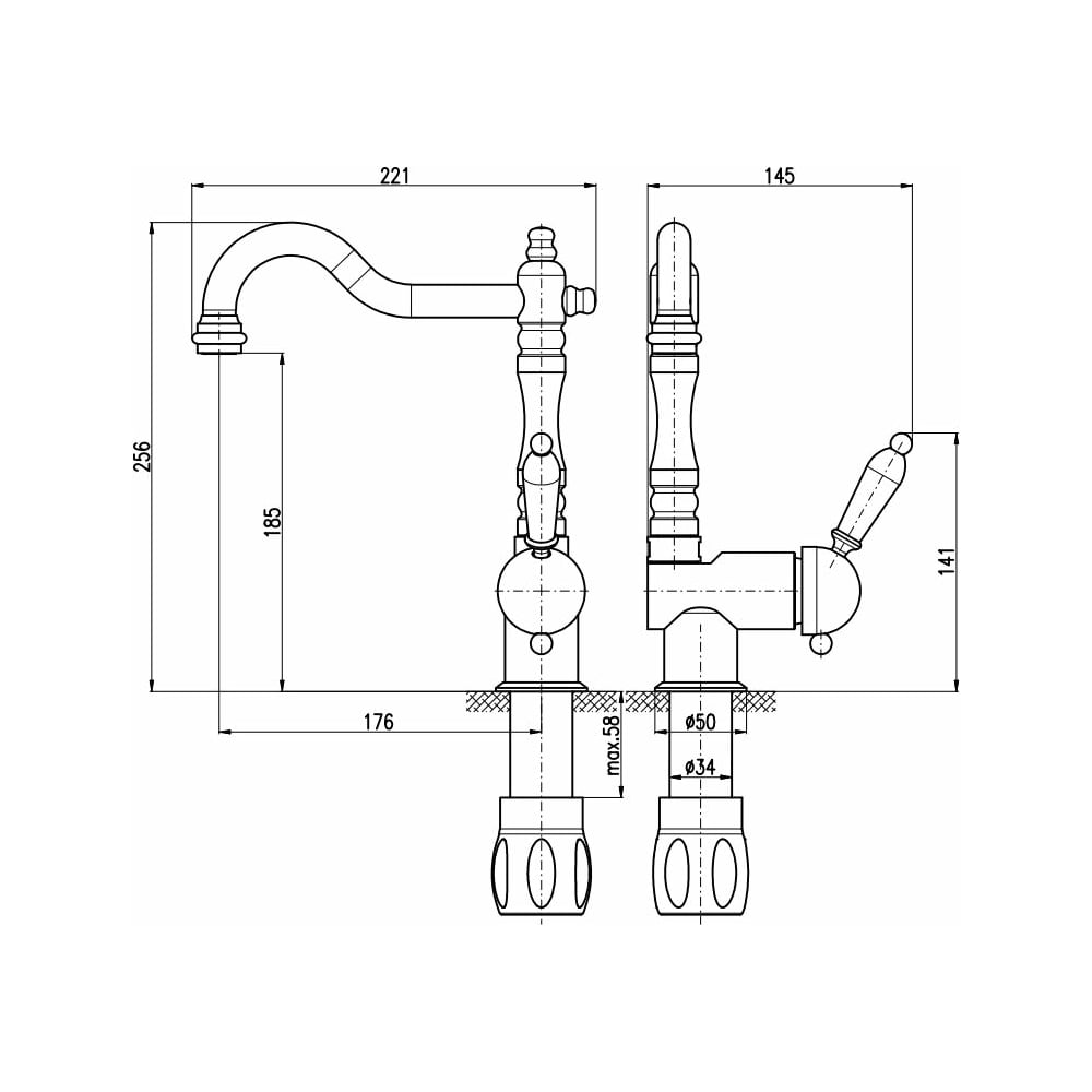 Смеситель для раковины/умывальника RavSlezak LABE с круглым поворот. изливом, бронзовый L408.5/8SM