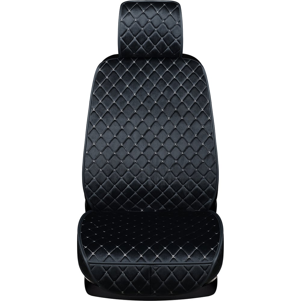 Накидка сиденья SKYWAY POSH вельвет, 2 предмета, черная/белая строчка S01302052