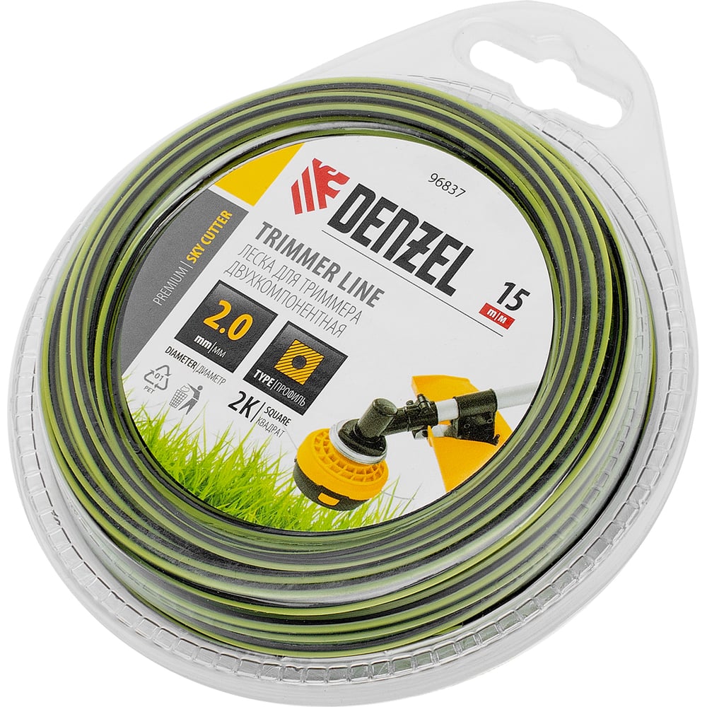Леска двухкомпонентная для триммера SkyCutter 2 мм, 15 м, блистер, квадратная Denzel 96837