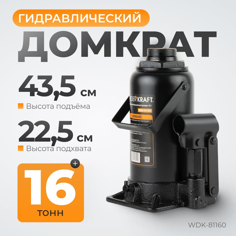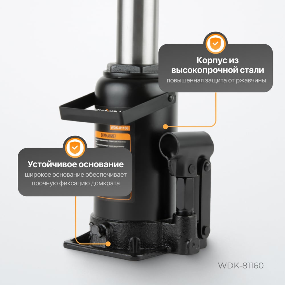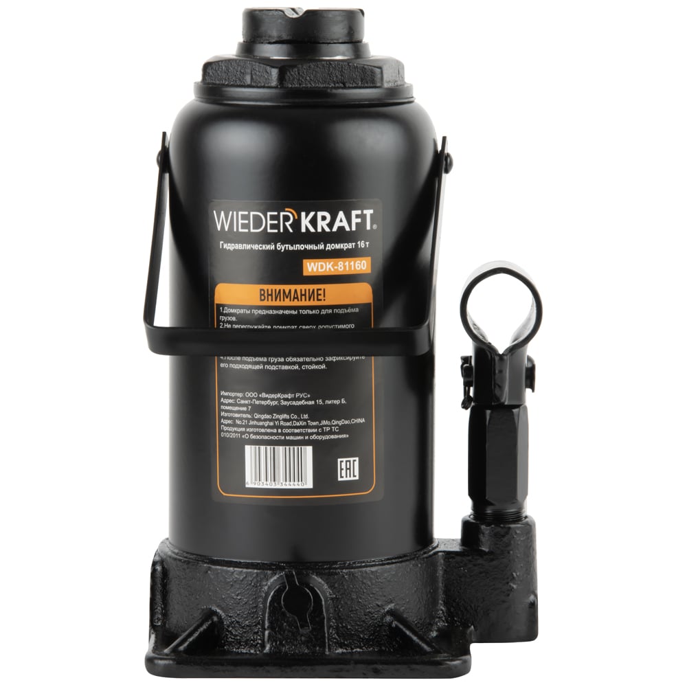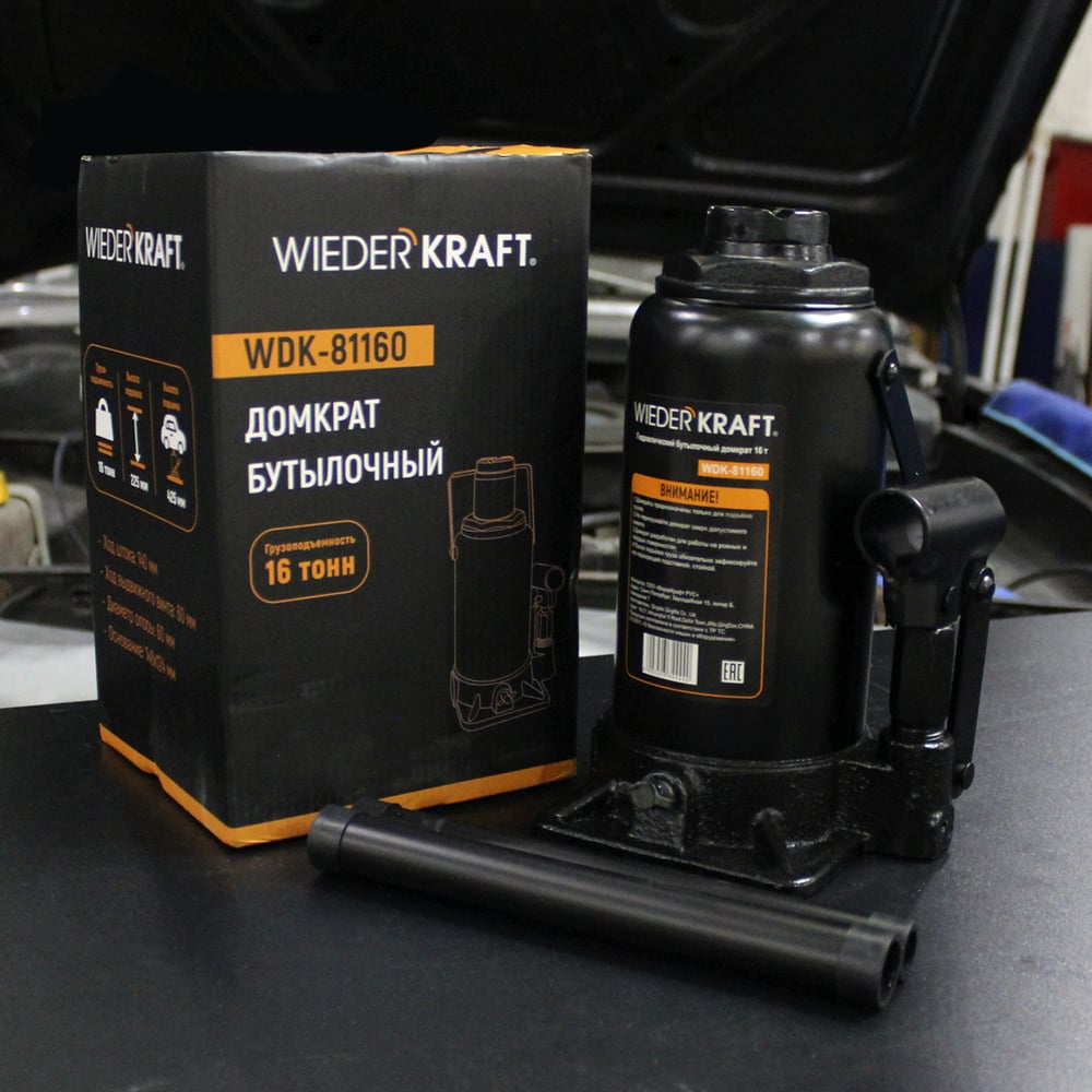 Wiederkraft домкрат бутылочный 16т гидравлический высота 157-440 черный wdk-81160